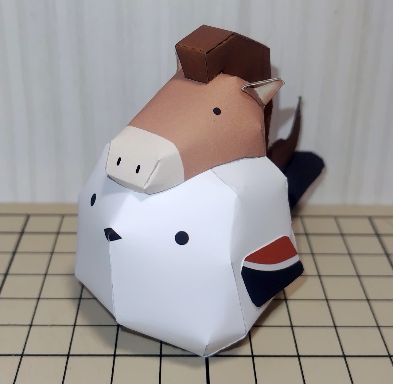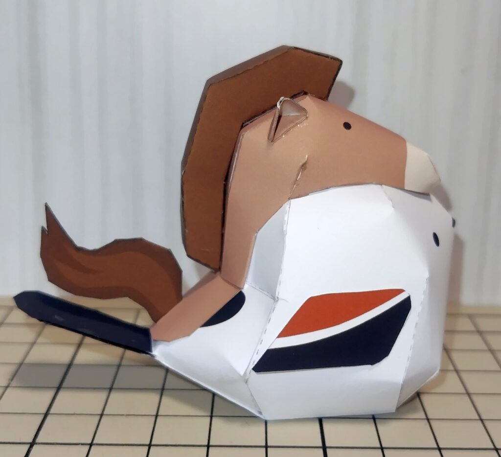 うちのペーパークラフトとしては、非常に簡単だと思いますが、糊付け位置がわからない場合は、ペパクラビューワーで確認してみて下さい。